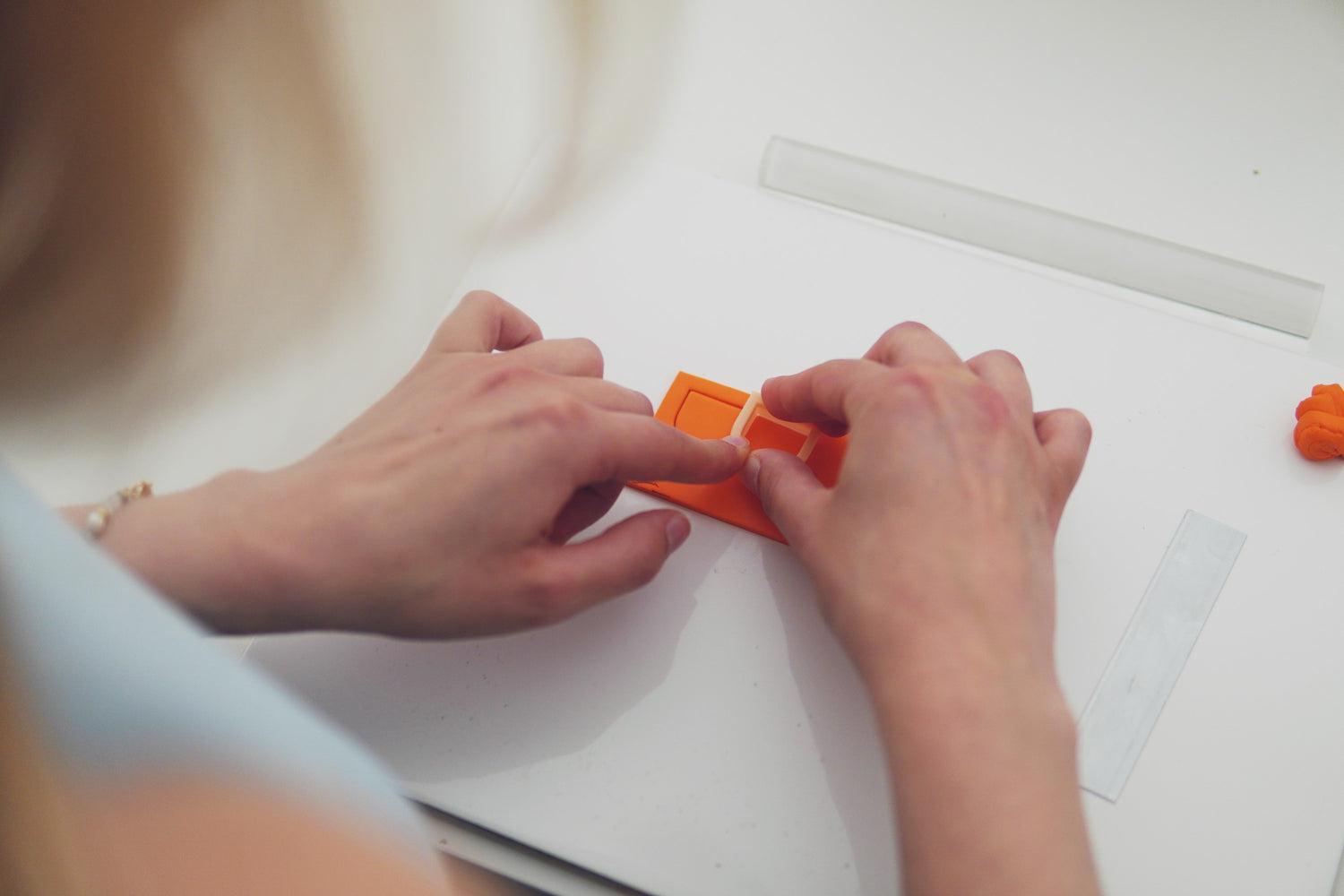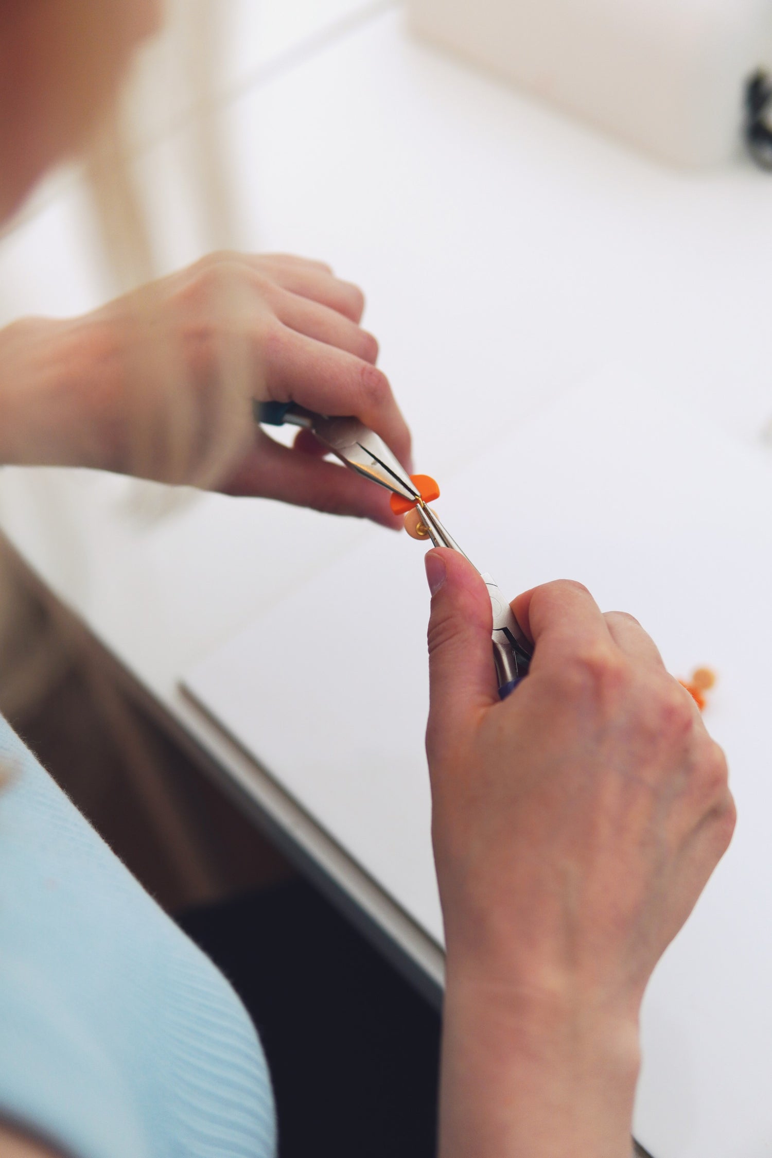 Je nach Design werden unterschiedliche Werkzeuge verwendet, um die Ohrringkomponenten in ihre Form zu bringen. Anschließend werden sie gebacken und bilden die Grundlage für dein Schmuckstück.