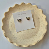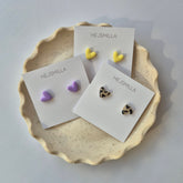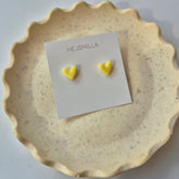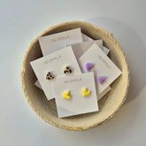 Die zarten Herz Ohrstecker sind perfekt in Kombination mit der Herz Kette. Du hast die Wahl aus drei modernen Farben - Leo-Muster, Buttergelb oder Flieder.
