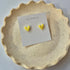 Die zarten Herz Ohrstecker sind perfekt in Kombination mit der Herz Kette. Du hast die Wahl aus drei modernen Farben - Leo-Muster, Buttergelb oder Flieder.